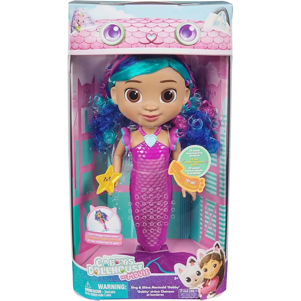La Casa delle Bambole di Gabby – Cinema: La Sirena Gabby cantante e luminosa porta un’esperienza magica nella cameretta dei bambini, direttamente dal mondo del popolare cartone animato. Questa speciale bambola sirena Gabby non è solo bellissima, ma anche interattiva: canta, si illumina e crea una vera atmosfera da fiaba durante il gioco. La sua coda da sirena scintillante e cangiante cattura subito l’attenzione dei bambini, soprattutto quando, a contatto con l’acqua, diventa ancora più spettacolare.