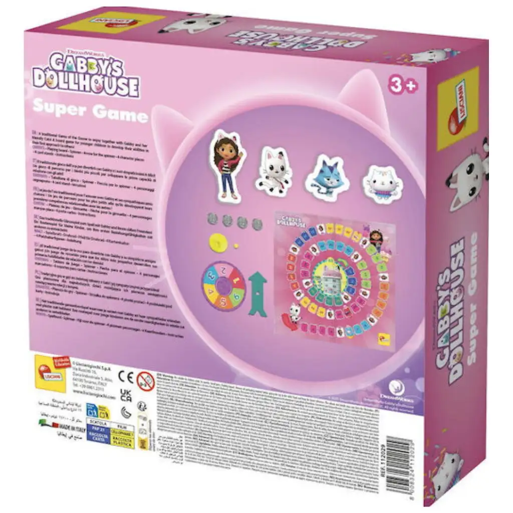 La Casa delle Bambole di Gabby: Gioco da Tavolo “Avventura Top” – un gioco allegro e colorato che invita i più piccoli nel mondo di Gabby e i suoi amici gattini, dove ogni lancio dei dadi porta a una nuova divertente tappa nella Casa delle Bambole. I giocatori avanzano lungo il percorso tortuoso con delle simpatiche pedine, mentre varie sfide, sorprese ed elementi da collezionare rendono l’“avventura top” ancora più emozionante. I turni scorrono velocemente, e i bambini imparano in modo spontaneo a seguire le regole, contare e gioire del proprio turno.