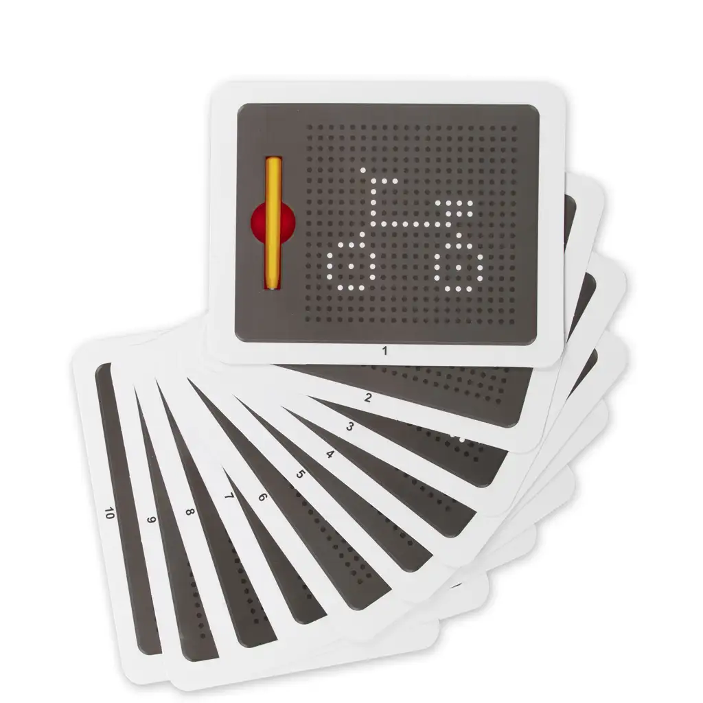 La lavagna da disegno magnetica con palline e penna offre unesperienza di disegno speciale e creativa per il tuo bambino. Nella lavagna sono presenti piccole palline metalliche che possono essere richiamate sulla superficie grazie alla penna magnetica, permettendo così la comparsa di disegni e motivi. Con le schede modello allegate i bambini possono seguire facilmente le figure o creare secondo la propria fantasia. Dopo aver completato il disegno, le palline possono essere semplicemente spinte di nuovo al loro posto, rendendo la lavagna riutilizzabile più e più volte. Il gioco sviluppa ottimamente la motricità fine, la manualità e la concentrazione, introducendo i bambini in modo divertente al mondo del disegno e delle forme. Ottima scelta per giocare in casa, per i viaggi o come regalo.
