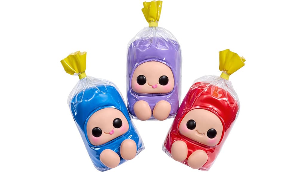 Questa serie di scatole sorpresa dolci contiene peluche ispirati ai dolci e snack preferiti dai bambini, con design che richiamano, tra gli altri, Hershey’s, Reese’s, Jolly Rancher, Hostess, ICEE e Blow Pop. Di ogni marchio si possono collezionare tre diversi peluche, per un totale di 18 stili, e per ogni personaggio esistono anche versioni rare e ultra-rare. Questi peluche non sono solo adorabili e morbidi al tatto, ma possono essere anche regali perfetti sia per bambini che per collezionisti. Grazie ai design vari e colorati, ognuno può trovare il suo preferito, che si tratti di una figura ispirata al cioccolato, alle caramelle o ai dolci.