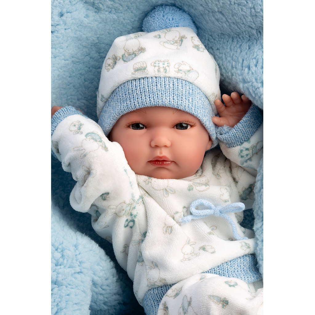 La Llorens Bimbo, bambola neonato da 35 cm con biberon e copertina, è la scelta perfetta se cerchi un giocattolo davvero realistico e affettuoso per il tuo bambino. La bambola mostrata nella foto riposa su una morbida copertina azzurra, con un biberon in mano, che rende lesperienza di gioco ancora più verosimile. La sua espressione dolce e la lavorazione ricca di dettagli aiutano i più piccoli a prendersene cura facilmente, a nutrirla e a metterla a dormire. Labbigliamento caldo e confortevole e il cappellino garantiscono che la bambola si senta sempre "a suo agio" durante il gioco.