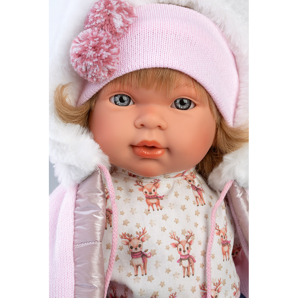Llorens: Carla, bambola piagnucolante da 42 cm con ciuccio e gonna blu