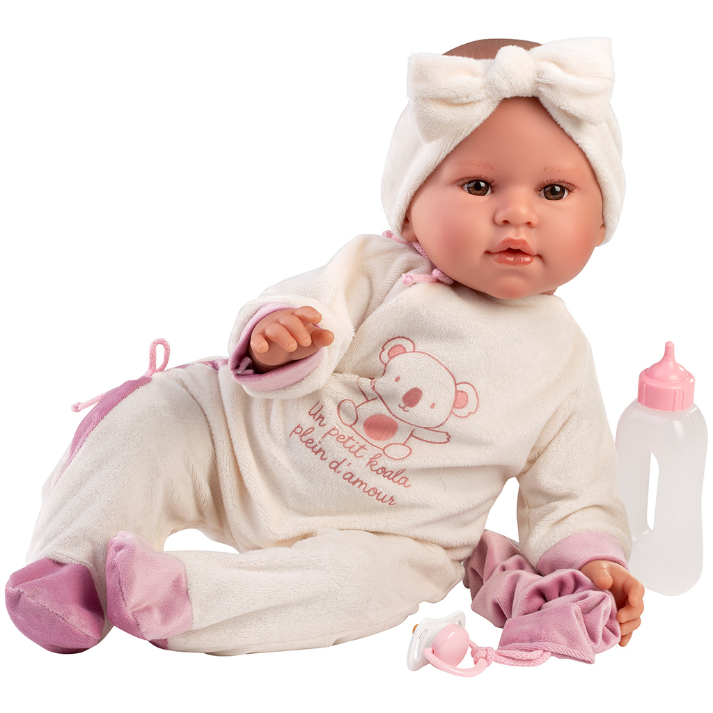 Llorens: Lea, bambola piangente di 45 cm con ciuccio, in tutina a tema koala.