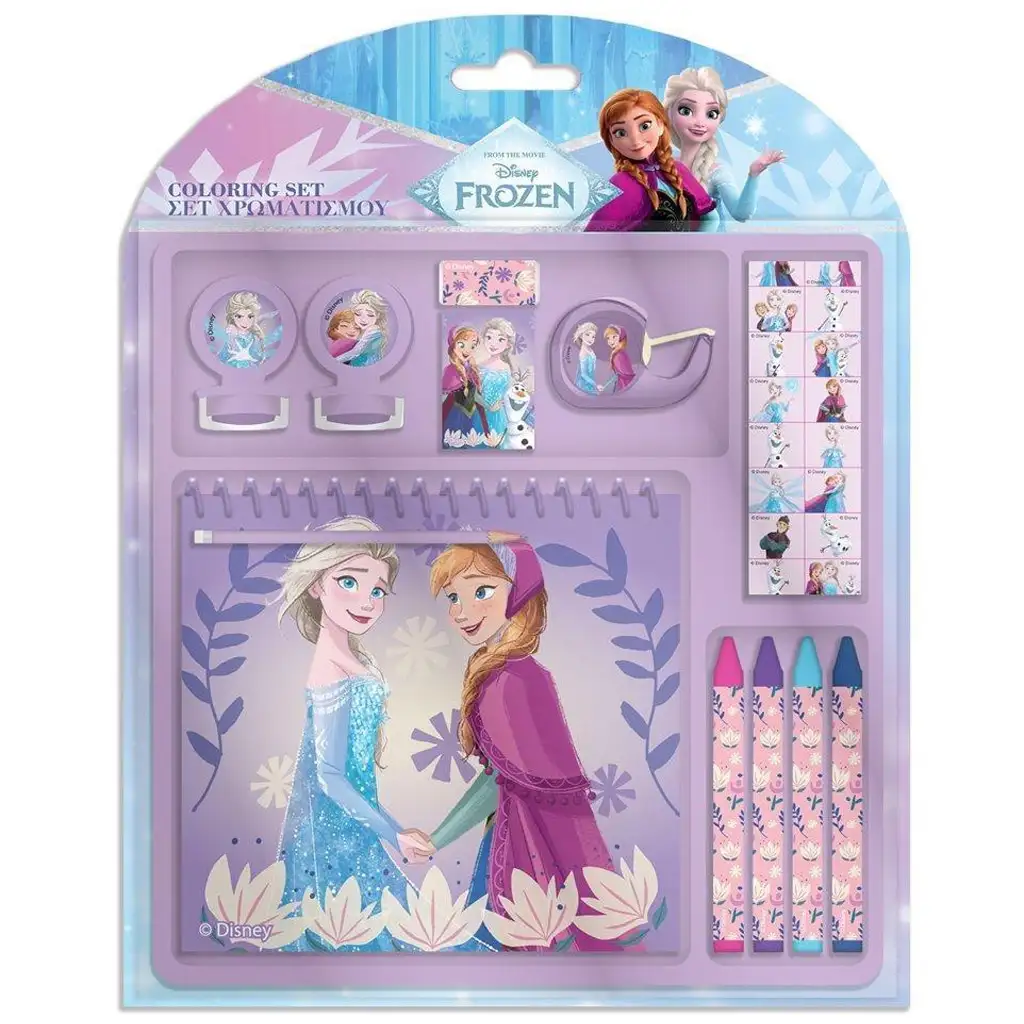 Nel set si trova tutto il necessario per il divertimento creativo: un bellissimo album da colorare a spirale, 4 allegri pastelli a cera con motivi Frozen, una gomma, un temperamatite, un dispenser di nastri decorativi, timbri e adesivi. Le pagine presentano affascinanti scene da colorare con i personaggi più amati della storia, così il tuo bambino potrà rivivere i momenti più belli del film e creare nuovi mondi utilizzando i propri colori.