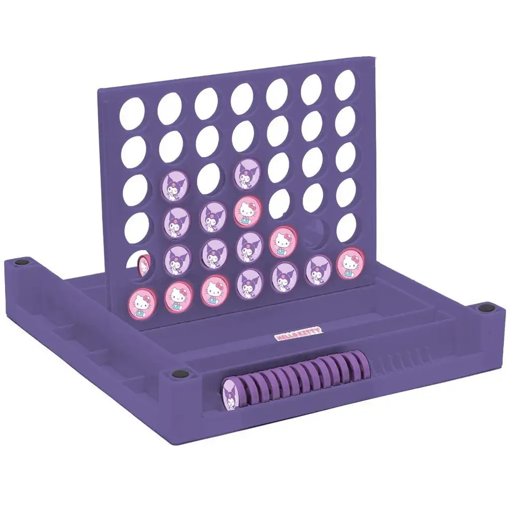 Su un lato del tabellone ti aspetta il conosciutissimo gioco "Scale e Serpenti", dove i bambini avanzano tirando il dado. Le scale aiutano a progredire, mentre i "serpenti" (in forma di allegri nastri) riportano indietro i giocatori, regalando sorprese ad ogni turno. Sull’altro lato si trova il gioco "Forza 4", dove l’obiettivo è allineare per primi quattro simboli uguali (Hello Kitty o Kuromi) orizzontalmente, verticalmente o diagonalmente.