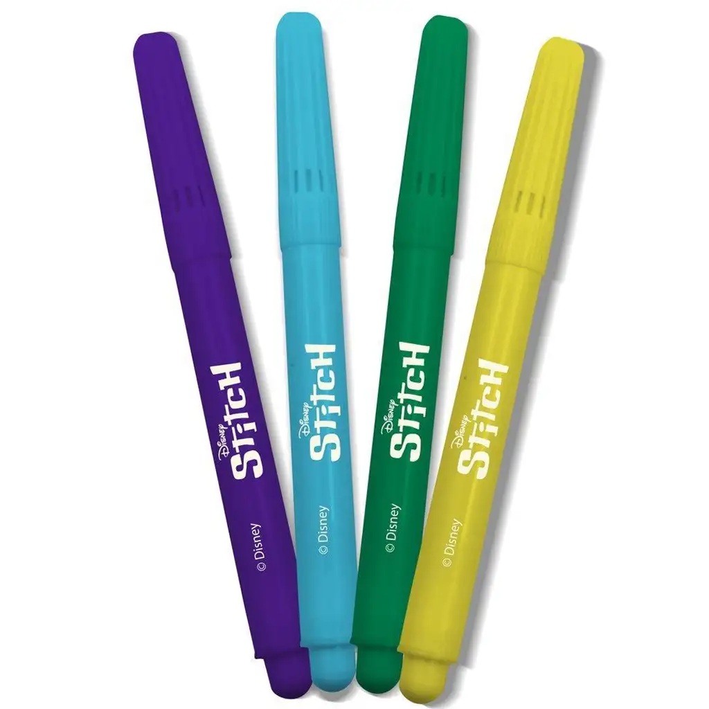 Il set include 20 fogli da colorare, su cui prendono vita i migliori momenti di Stitch: balla, si rilassa, fa lo sciocco e in alcune immagini appare anche Angel. I piccoli artisti possono decorare i fogli con quattro pennarelli dai colori vivaci (viola, azzurro chiaro, verde, giallo), sviluppando così la manualità, il senso dei colori e il pensiero creativo.