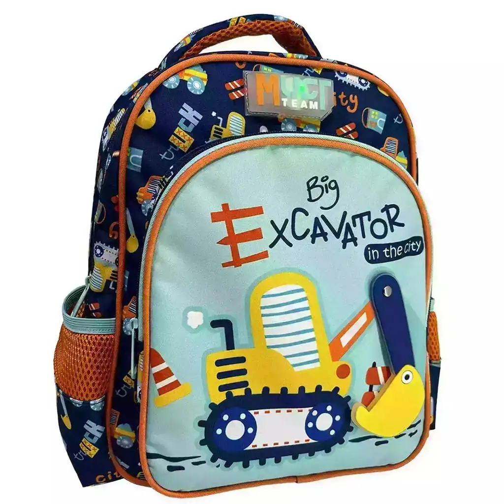 Luna: Zainetto per l’asilo a 2 scomparti con angoli arrotondati, motivo escavatore Team Markoló, 27x10x31cm