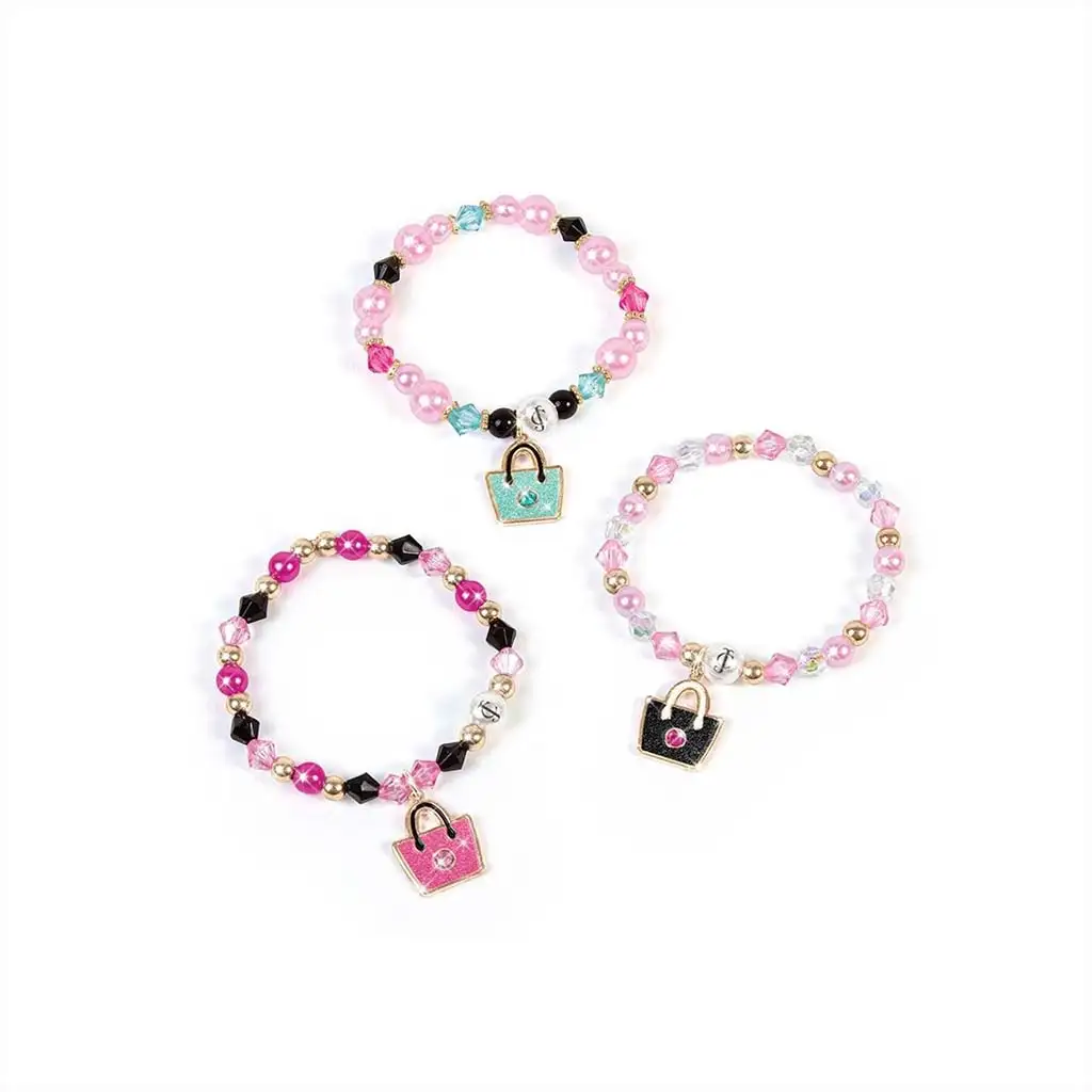 Il set comprende perle bellissime, charm eleganti e 3 mini borse speciali, che possono essere utilizzate non solo per conservare i gioielli, ma anche come accessorio di moda. I bambini possono combinare liberamente il rosa, loro, il nero e il turchese, creando gioielli completamente unici. I braccialetti si infilano su un elastico, rendendoli comodi da indossare e facilmente modificabili in qualsiasi momento.