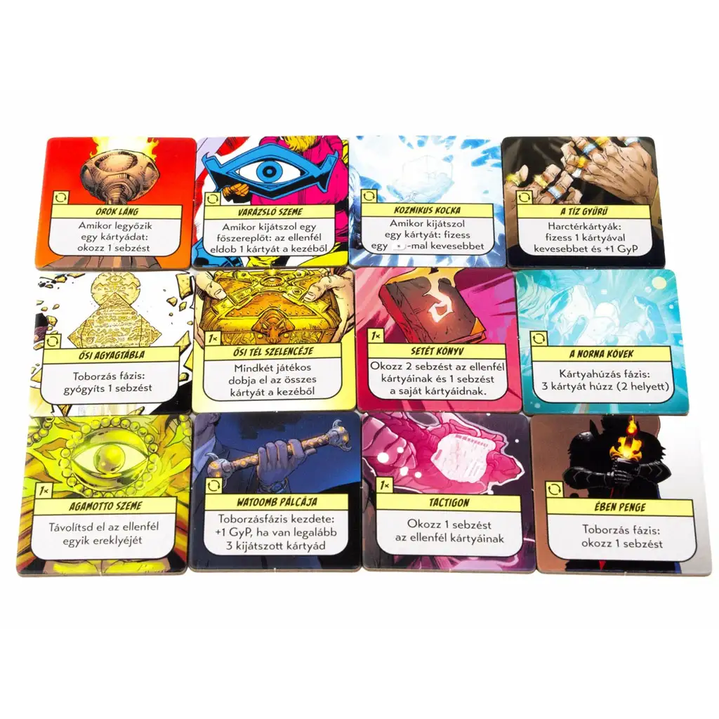 Ogni turno puoi reclutare, giocare carte ed eseguire azioni. Gli eroi o i cattivi del tuo mazzo hanno abilità speciali e ogni carta apre nuove strategie. Durante la battaglia puoi anche ottenere reliquie come il Cubo Cosmico, l’Occhio del Mago o l’Occhio di Agamotto, che possono cambiare drasticamente l’andamento della partita – una sola mossa ben giocata può ribaltare la situazione.