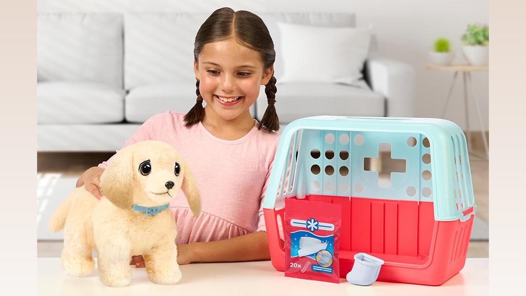 L’amore per i cani non solo porta gioia nella vita quotidiana, ma insegna anche ai bambini ad assumersi delle responsabilità. Prendersi cura di un cane avvicina i membri della famiglia, crea esperienze condivise e rafforza i legami familiari. I bambini che imparano fin da piccoli come prendersi cura di un animale possono anche scegliere in futuro la carriera veterinaria, poiché acquisiscono presto le basi della cura responsabile degli animali.I bambini possono decorare e applicare il gesso magico sulla zampa di Cooper, il cagnolino, e poi osservare come la sua zoppia scompare. Cooper emette suoni tipici dei cani e risponde con reazioni, inoltre arriva insieme a un trasportino per cani. Questo gioco non è solo divertente, ma aiuta anche i bambini a conoscere l’empatia e la cura, mentre sviluppa le loro abilità motorie fini e la creatività. Cooper è il compagno perfetto per il gioco di ruolo e porta gioia a tutti i piccoli amici degli animali.