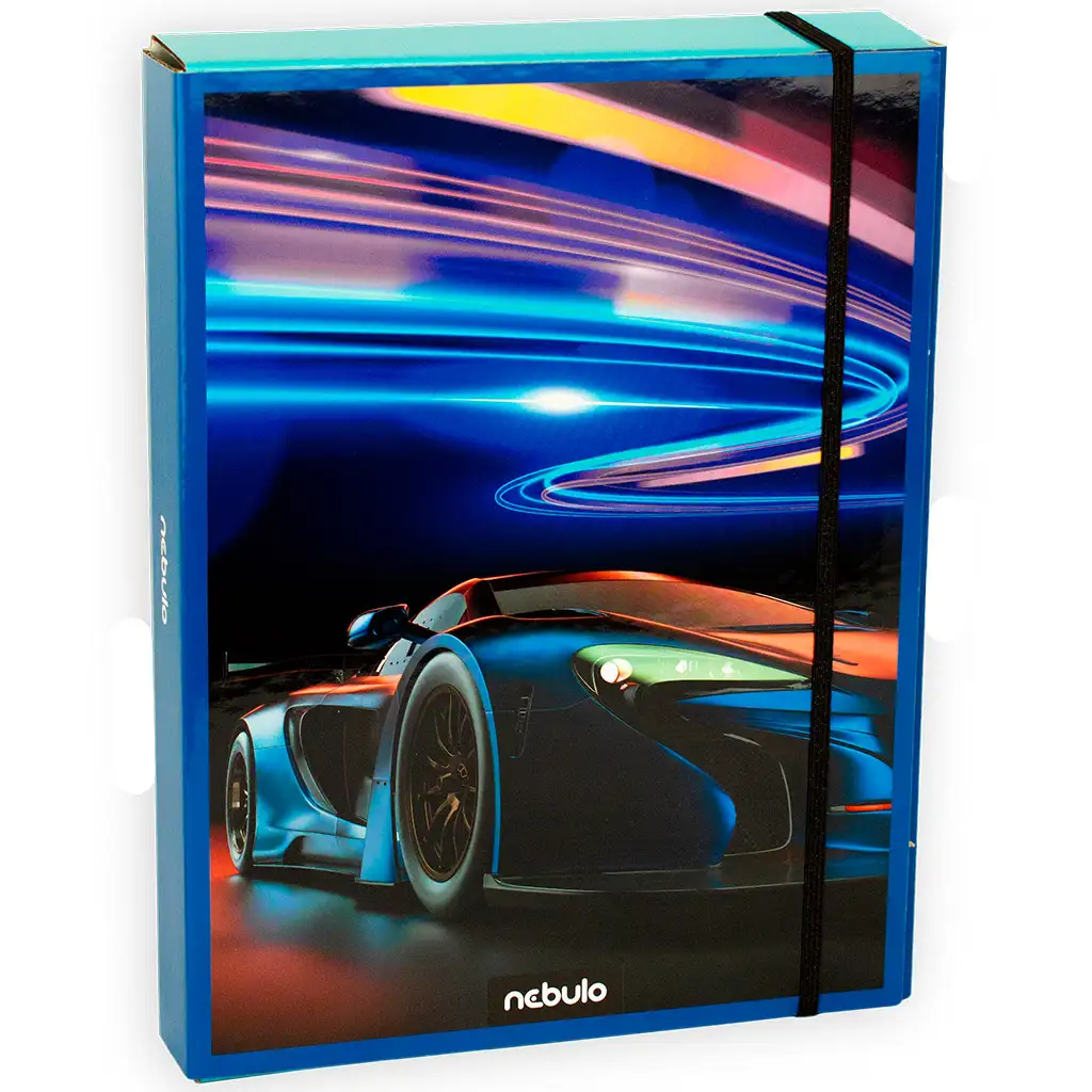 La scatola porta-quaderni Nebulo formato A/5 con motivo di auto sportiva è il sogno di ogni piccolo appassionato di automobili! Sulla copertina, una macchina sportiva futuristica sfreccia tra strisce luminose dinamiche, come se fosse appena uscita dal mondo di un videogioco. Questa grafica spettacolare e piena di energia conquisterà sicuramente tutti i ragazzi (e le ragazze) amanti delle auto, portando stile e grinta nei giorni di scuola.