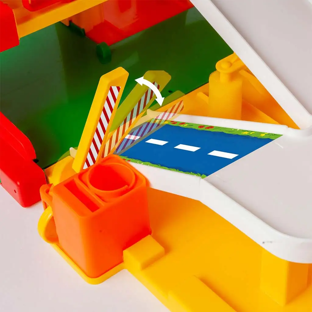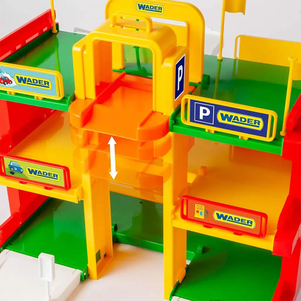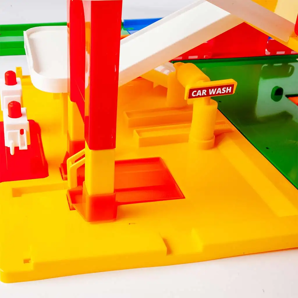 Il Garage di servizio a tre piani con strada e accessori è un entusiasmante set da gioco ricco di dettagli, che porta vere avventure urbane nella stanza dei bambini. Il garage, dai colori vivaci e dalla struttura robusta, offre tante cose da scoprire su tre livelli: parcheggi, area di servizio e autolavaggio, così le macchinine possono ricevere un’assistenza completa.