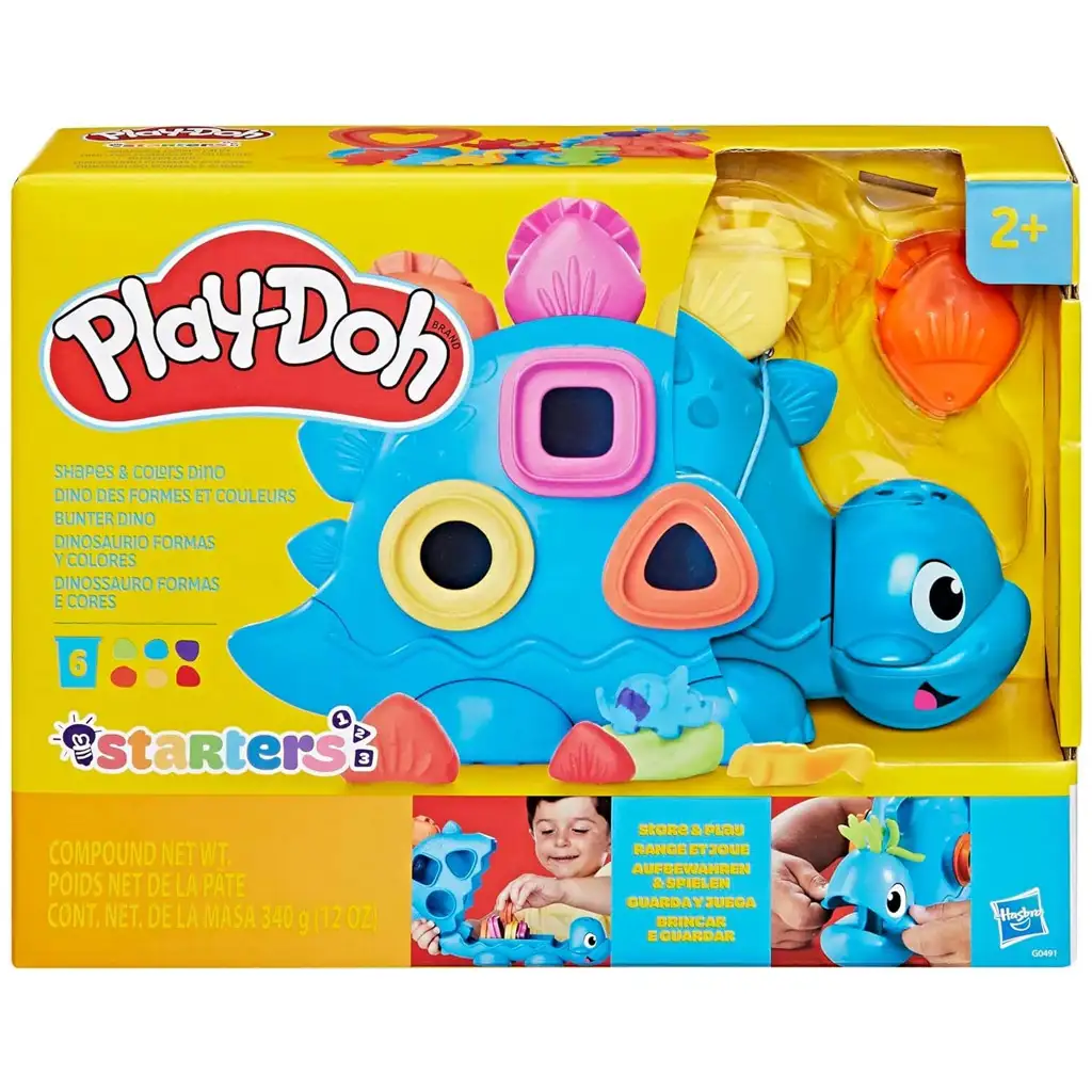Il set contiene 6 vasetti di pasta Play-Doh di diversi colori (per un totale di 340 grammi), ideali per permettere ai piccoli di modellare, schiacciare, arrotolare e creare liberamente. Sul corpo del dinosauro si trovano elementi puzzle che aiutano i bambini a imparare le forme di base mentre giocano e si divertono. Nel set sono inclusi anche formine, stampini, un piccolo rullo e un coltello, che stimolano lo sviluppo della motricità fine e la coordinazione occhio-mano.