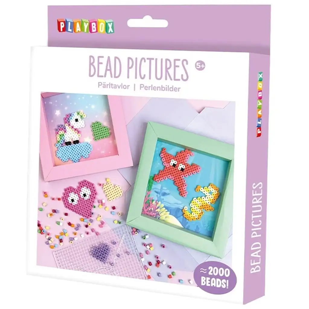 Crea colorate opere d’arte incorniciabili con il set PlayBox per creare immagini con perline, che contiene circa 2000 perline stirabili! Questo kit creativo è particolarmente ideale per bambini dai 5 anni in su che amano i lavori manuali, comporre forme e sperimentare con i colori. Con il set si possono realizzare allegri motivi adatti ai bambini – come cuoricini, stelle marine, unicorni o cavallucci marini – facilmente realizzabili grazie ai modelli inclusi.