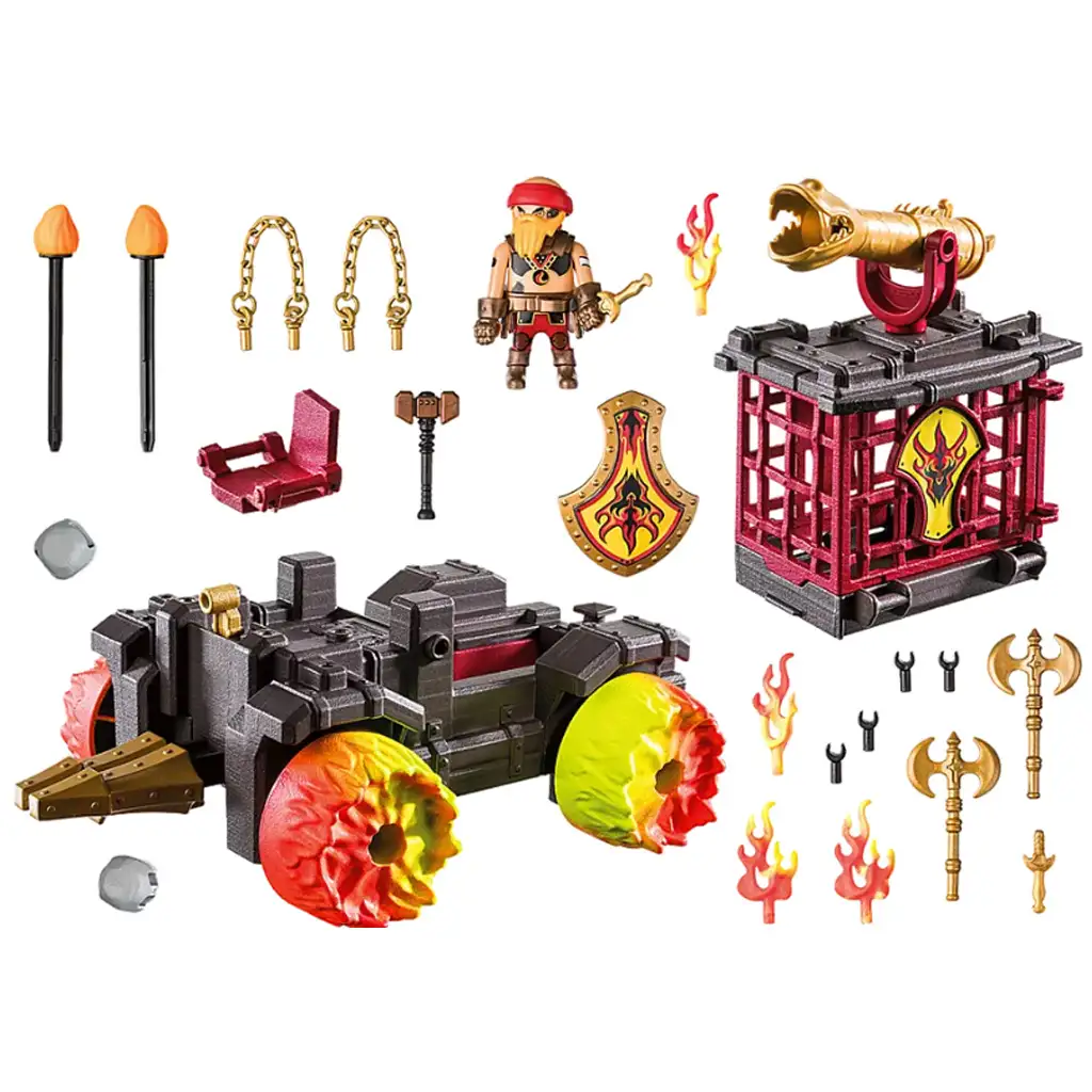 Il Playmobil: Burnham Raiders - Carro da Combattimento Infuocato (71299) è un emozionante set di gioco che introduce i bambini nel mondo dei cavalieri Burnham Raiders, dove dominano il fuoco e la battaglia. Sulphur, il cavaliere dei Burnham Raiders, è pronto a combattere con il suo carro da combattimento infuocato e le sue armi.