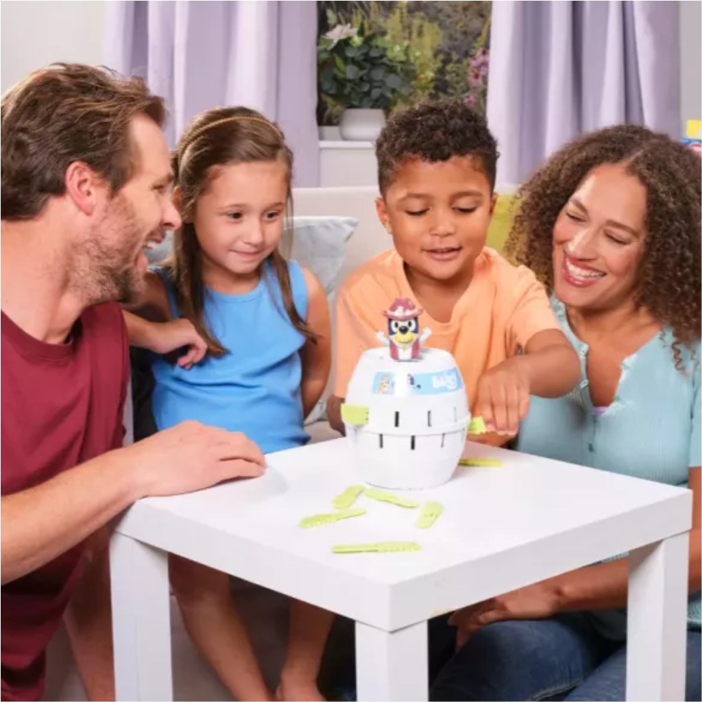 Il gioco da tavolo Pop Up: Bluey è un divertente e avvincente gioco per tutta la famiglia, che porta il colorato mondo della popolare serie animata Bluey ai bambini e agli adulti. Durante il gioco i giocatori inseriscono a turno le aste a forma di coccodrillo nel barile di Bluey, mentre tutti aspettano con trepidazione il momento in cui Bluey salta fuori. Il momento inaspettato è pieno di risate ed emozione, rendendo ogni partita un’esperienza speciale.
