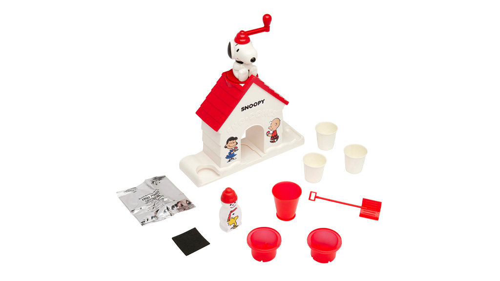 Dopo che le famiglie riempiono e sistemano i portaghiaccio, inseriscono un cubetto (con la X rivolta verso lalto) nella cuccia del cane. Quando il tritaghiaccio di Snoopy viene posizionato sopra, i bambini fissano il corpo di Snoopy ruotandolo in senso orario. I bambini possono girare il tritaghiaccio di Snoopy e osservare mentre riempie il bicchiere rosso riutilizzabile, che è posizionato sotto la cuccia, e poi possono raccogliere i trucioli nei bicchieri di carta. Infine, i bambini possono preparare lo sciroppo versando la bustina al gusto di punch alla frutta in un bicchiere di carta e mescolandola con acqua fino a quando i grumi non si sciolgono, poi versano il tutto nella bottiglia e spruzzano lo sciroppo sul ghiaccio.I bambini possono usare la paletta per trasferire il ghiaccio tritato nei propri bicchieri. Questo è un ottimo modo per permettere a ciascuno di creare la propria granita unica. Con laiuto della paletta, possono facilmente dosare il ghiaccio e rendere il dessert ancora più emozionante con vari aromi. Questa attività non è solo divertente, ma sviluppa anche le "abilità motorie fini" dei bambini. Fonte: Cra-Z-Art