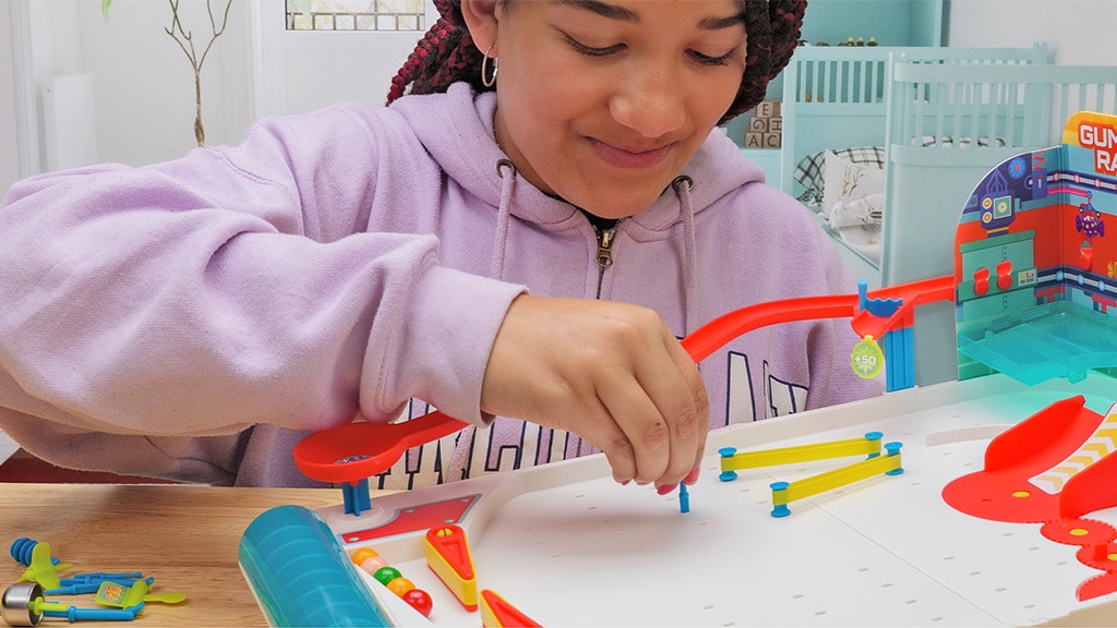 Il classico flipper riceve un tocco molto dolce nel nuovo set di Thames & Kosmos. Il set costruttore di flipper: Gumball Rally combina lintrattenimento educativo con le abilità di gioco, mentre i bambini costruiscono una macchina che utilizza gomme da masticare commestibili come palline da flipper. I bambini possono disporre gli ostacoli a loro piacimento e, quando è il momento di giocare, possono guadagnare punti dirigendo le gomme da masticare verso i bersagli.