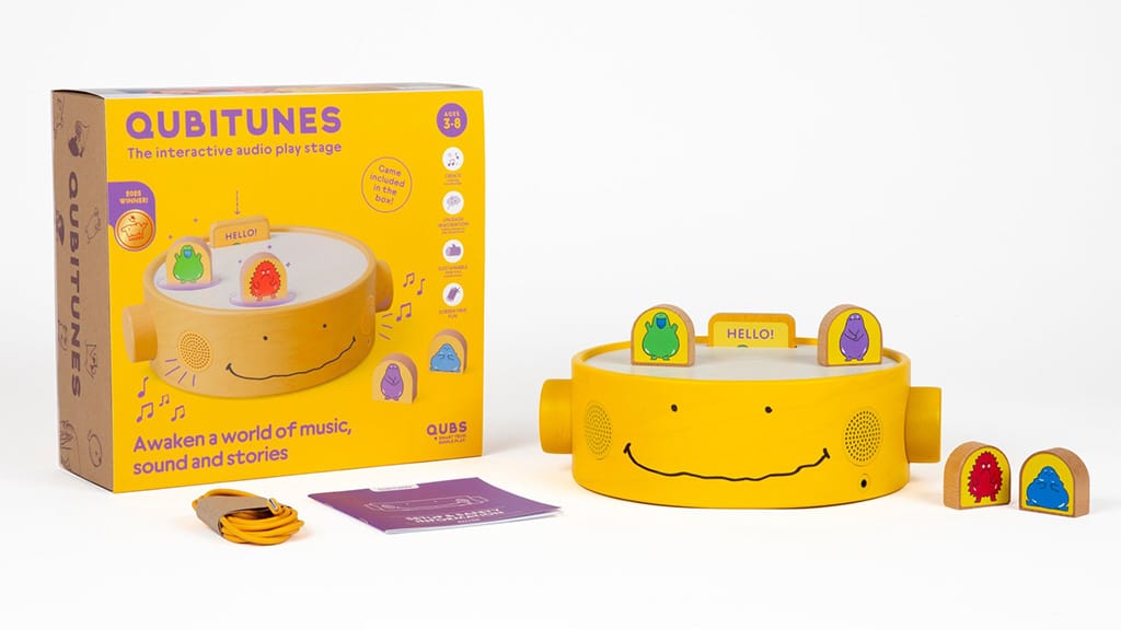 I bambini possono posizionare i blocchi in diverse zone, aprendo così infinite possibilità di gioco davanti a loro. Questo sviluppa la loro creatività, le capacità di risoluzione dei problemi e la motricità fine, mentre possono creare e giocare liberamente.Le famiglie possono offrire esperienze di apprendimento pratico infinite con un palcoscenico per giochi realizzato con materiali sostenibili. Il set include una cassetta introduttiva 4 in 1 che aiuta i bambini a orientarsi nel mondo di Qubitunes. Inserendo la cassetta "Hello", i piccoli studenti possono giocare a semplici giochi e ascoltare storie mentre muovono i quattro blocchi di legno. Oltre al divertimento senza schermo, i bambini ottengono anche vantaggi educativi, come lo sviluppo del pensiero causale e delle abilità motorie fini. Anche i genitori possono apprezzare il connettore audio del palcoscenico, che permette ai bambini di ascoltare i suoni tramite le cuffie. Questo gioco non solo è divertente, ma contribuisce anche allo sviluppo dei bambini, mentre la famiglia può trascorrere insieme del tempo di qualità.