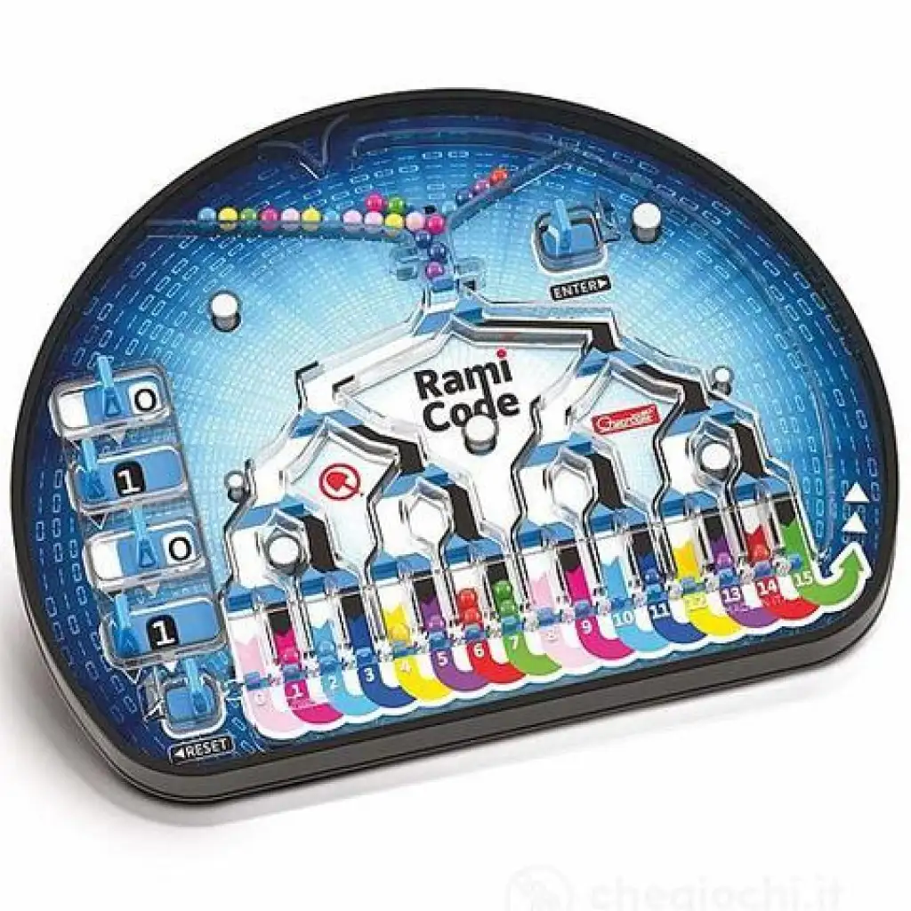 Ormai quasi tutti sanno che nei computer si utilizza il sistema binario al posto del decimale, ma meno persone sanno come funziona realmente. Il sistema binario è semplice, poiché permette di descrivere ogni numero con zeri e uno, ma come appare realmente? Il gioco chiamato Rami Kód insegna ai bambini le basi del sistema binario in modo divertente e semplice. Ogni pallina ha un colore a cui corrisponde un numero. I commutatori devono essere impostati in modo che gli zeri e gli uno mostrati diano il risultato corretto. Quando tutto è pronto, si può lanciare la pallina e, se siamo stati bravi, arriverà nel posto giusto.