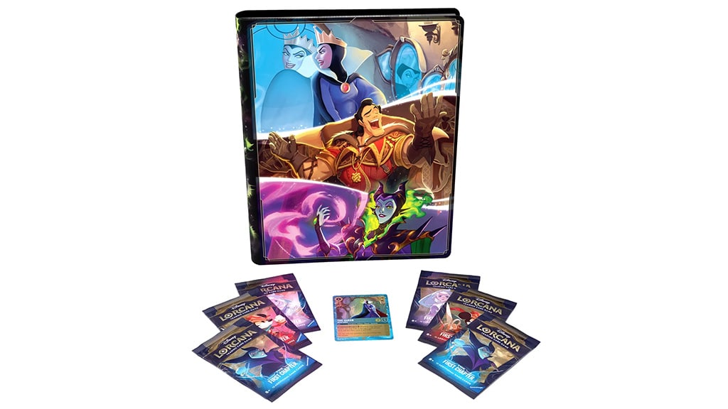 I bambini possono ora rendere i loro giochi ancora più emozionanti con un set ispirato ai Disney Villains. Questo set include un portfolio a tema cattivi, sei bustine di espansione The First Chapter, oltre a una speciale carta promozionale olografica "The Queen – Mirror Seeker".