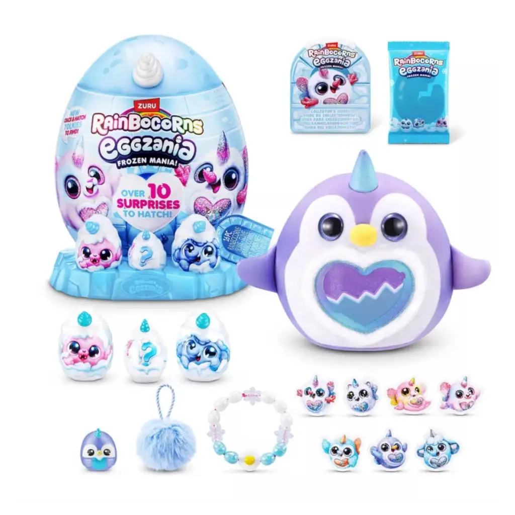 L’uovo sorpresa Rainbocorns Eggzania Frozen Mania garantisce un sorriso ad ogni apertura. Nell’uovo grande si trova un morbido e simpatico peluche, accompagnato da altre piccole uova piene di entusiasmanti sorprese. Tra gli accessori si trovano minifigure collezionabili, elementi per creare gioielli e piccoli giochi, che rendono l’esperienza ancora più divertente.