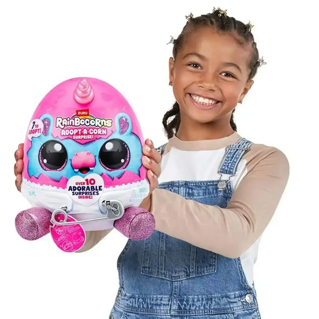 Il set di peluche sorpresa Rainbocorns: Adopt-a-Corn offre unesperienza di gioco davvero speciale per i bambini! Il pacchetto è nascosto in un enorme uovo sorpresa e, una volta aperto, ti aspetta un dolce piccolo peluche unicorno che diventerà subito il tuo migliore amico. Queste figure morbide e squishy sono perfette per abbracci e giochi fantasiosi.
