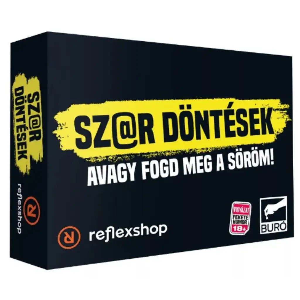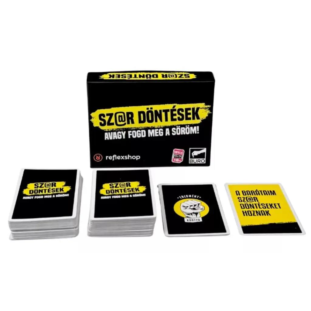Il gioco da tavolo “Decisioni di M***a” è un party game sfacciato e pensato per adulti, con humor nero, in cui ogni turno dovrai scegliere tra due opzioni orribili... e nessuna sarà una buona idea. La meccanica del gioco è semplice ma mortalmente divertente: leggi un dilemma, gli altri votano e tu cerchi di indovinare quale “decisione di m***a” sceglierà la maggioranza. Se indovini, ottieni un punto – se sbagli, almeno avrai una nuova storia da raccontare su quanto poco conosci i tuoi amici.