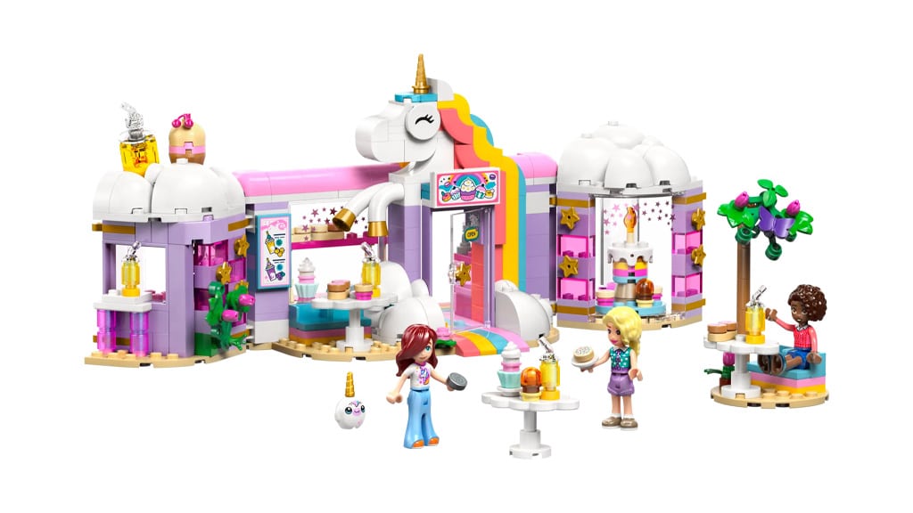 Anche i più piccoli possono costruire il LEGO Friends Unicorno Dream Café. Questo set da costruzione da 475 pezzi include tre mini figure, un bar di succhi e frullati, accessori a tema unicorno, un supporto per cupcake girevole e molti altri elementi entusiasmanti. Gli elementi colorati e creativi del set aiutano a sviluppare l'immaginazione e la manualità dei bambini, offrendo ore di divertimento. I motivi unicorno e gli accessori ricchi di dettagli rendono questo set particolarmente attraente per tutti i piccoli costruttori.