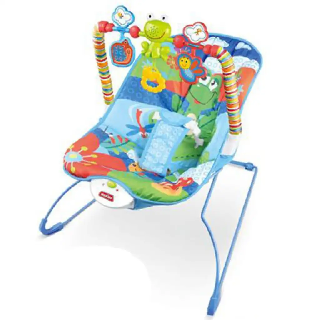 Puoi sorprendere il tuo bambino con una sedia a sdraio davvero comoda e dotata di funzioni extra, utilizzabile già dalla nascita, che lo accoglierà comodamente durante i pasti o i pisolini pomeridiani. La sedia a sdraio è dotata di elementi accessori che si presentano sotto forma di sonagli e mordicchiatori, sospesi sopra la testa del tuo bambino, catturando facilmente lattenzione anche dei più piccoli. La sedia a sdraio ha una funzione vibrante e musicale che culla il tuo bambino nel sonno in un attimo.