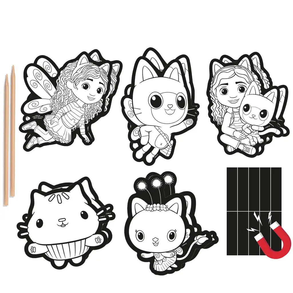 Set creativo con 10 magneti da frigorifero da grattare con immagini della casa delle bambole di GabiSet creativo con 10 magneti da frigorifero da grattare con immagini della casa delle bambole di Gabi