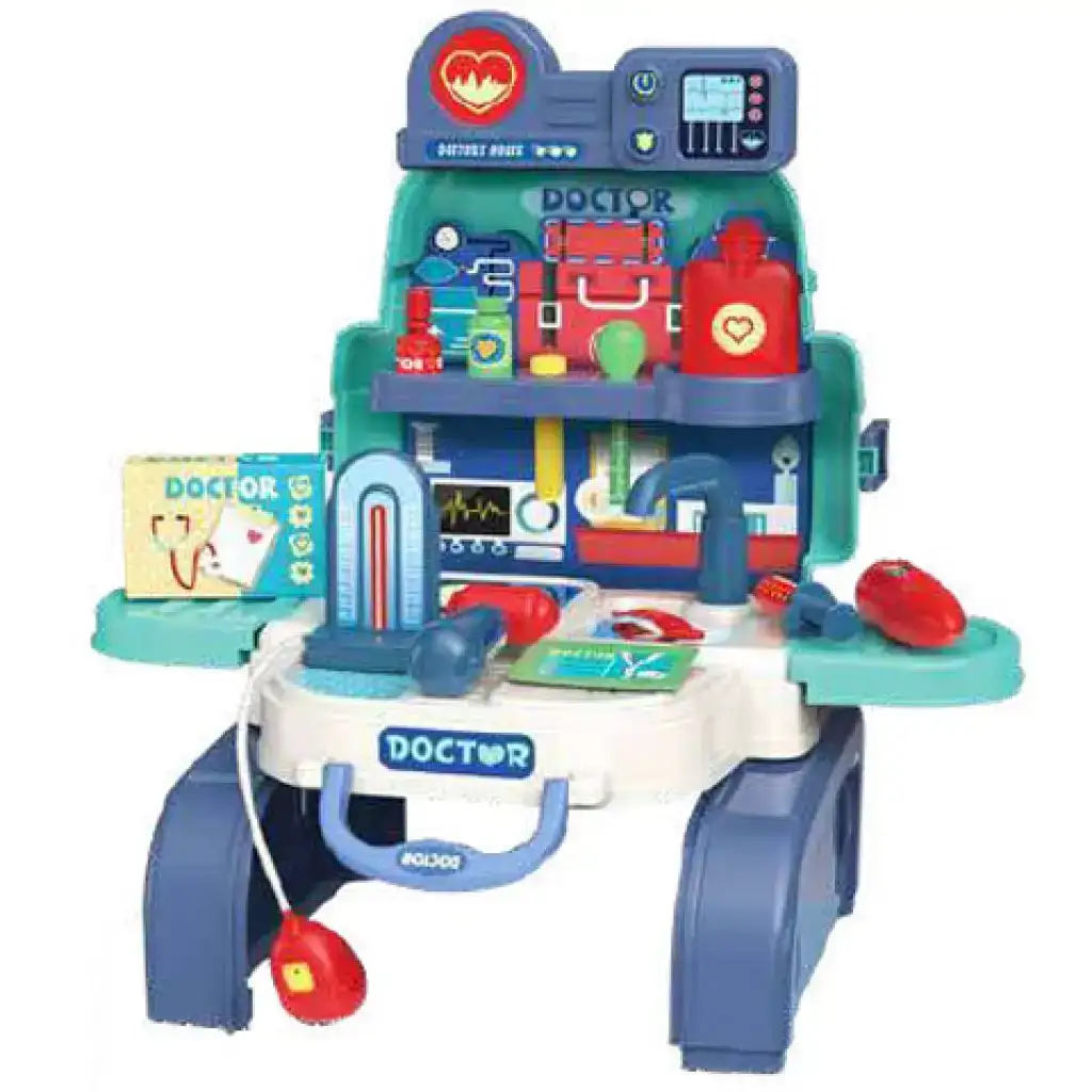 Sebbene le borse mediche non siano generalmente immaginate come zaini, questo design è piuttosto ingegnoso, poiché la borsa può essere trasformata in un attimo, diventando un ambulatorio ben attrezzato dove i bambini possono giocare a fare i dottori. Il set è contenuto in un fantastico e pratico zaino di plastica, che non solo permette di tenere tutti gli accessori del gioco in un unico posto, ma è anche perfetto per i bambini per creare un bancone e posizionare gli accessori sopra.