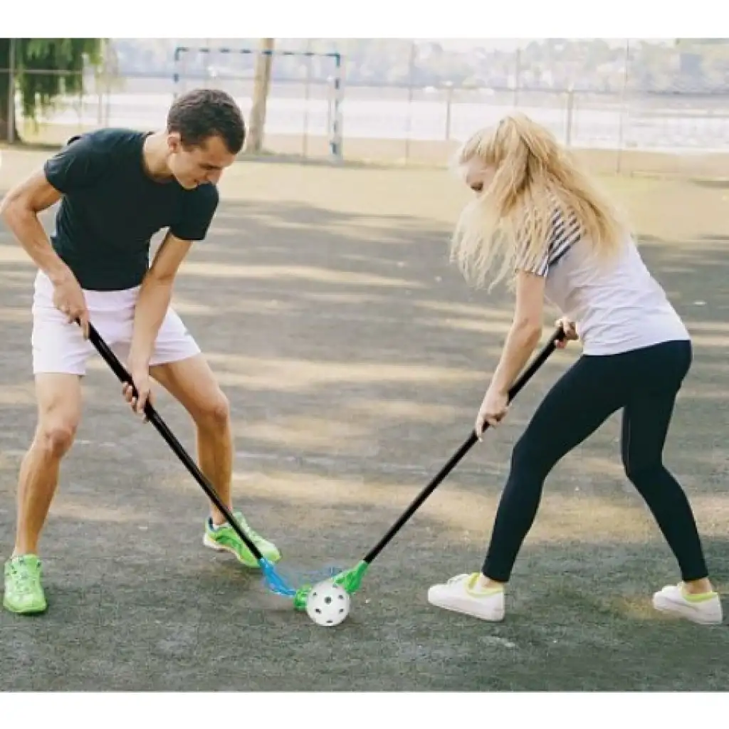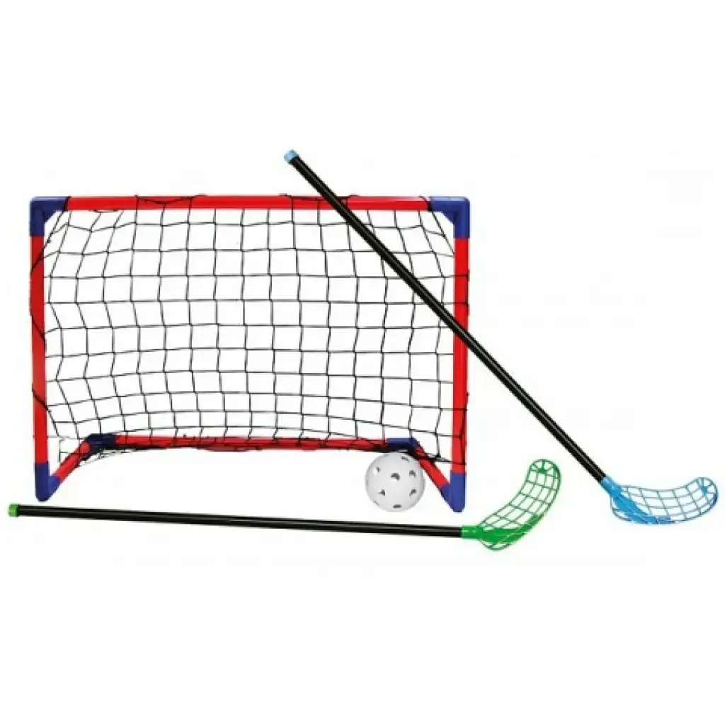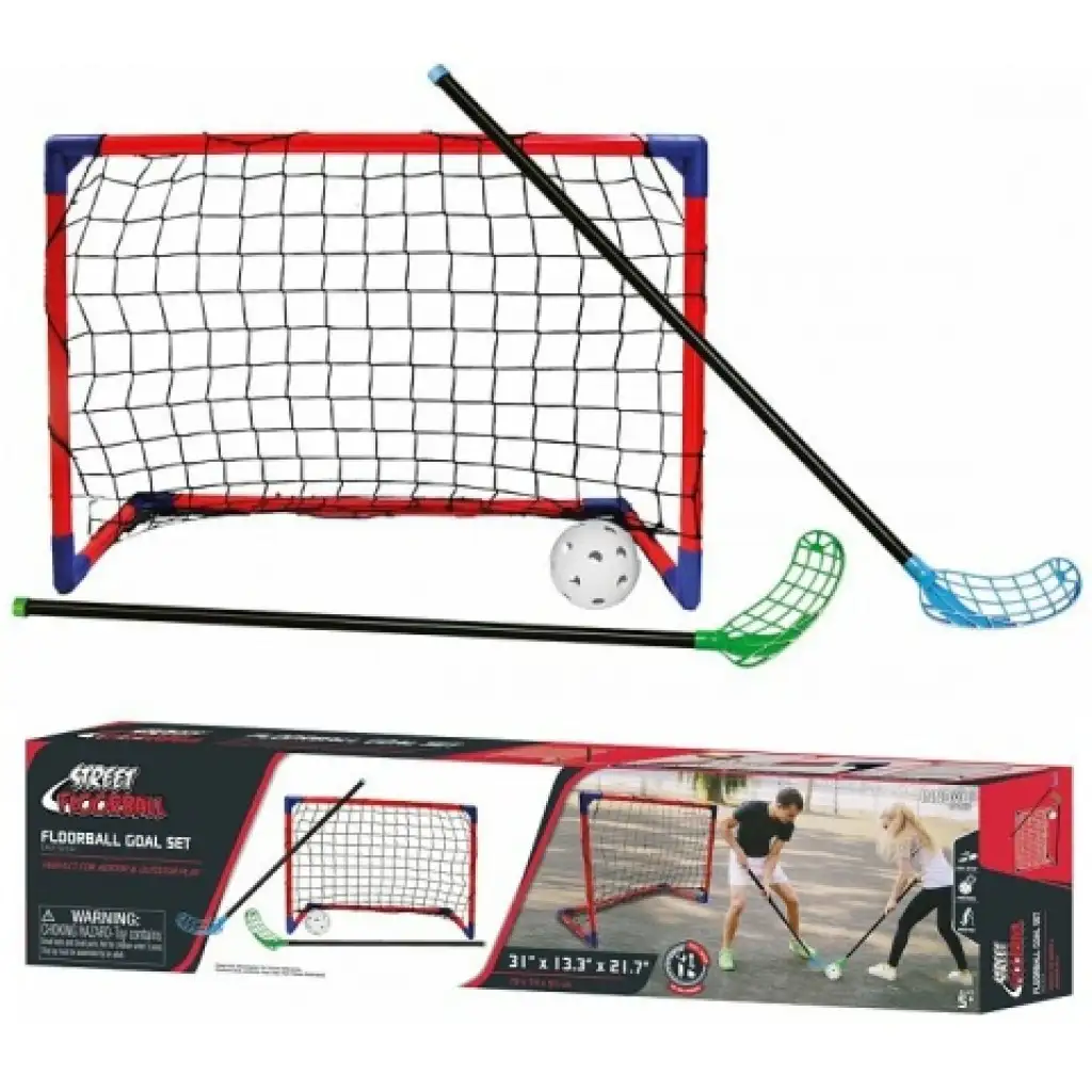 Il floorball è un gioco con la palla dinamico e dal ritmo veloce, con regole simili a quelle dell’hockey su ghiaccio, ma senza richiedere le stesse condizioni necessarie all’hockey. Il gioco può essere praticato sia all’aperto che al chiuso, su superfici asfaltate o erbose. Con questo set, due squadre possono giocare una contro l’altra contemporaneamente. La popolarità del floorball è cresciuta in tutto il mondo negli ultimi anni, specialmente in Europa e Nord America. Questo sport è facile da imparare e rappresenta un passatempo ideale per tutte le età, contribuendo allo sviluppo della resistenza fisica e del lavoro di squadra. Il set contiene 2 mazze, una porta e una pallina traforata. La dimensione della porta montata è di 79x34x55 cm.