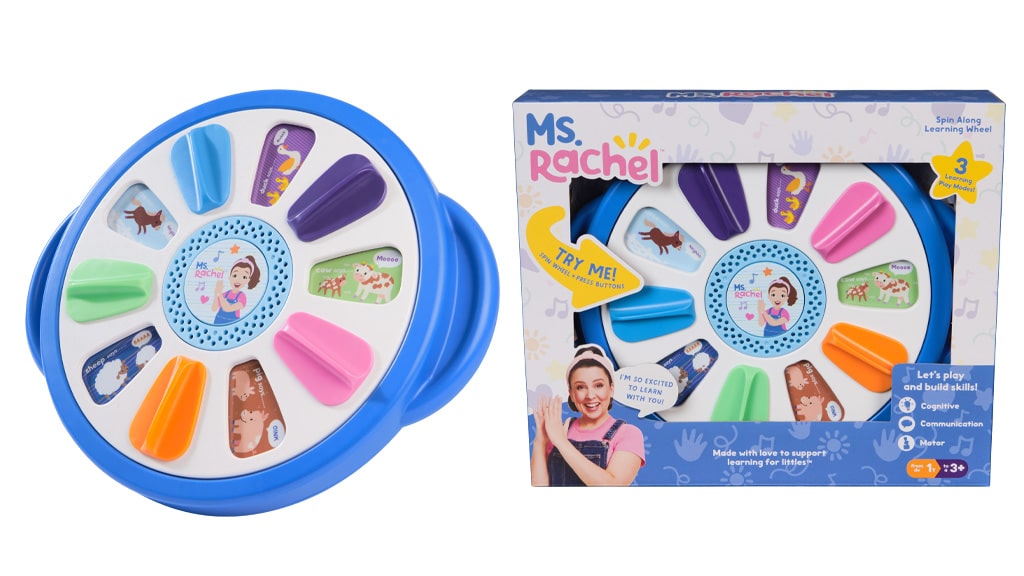 Non è un segreto che i bambini piccoli adorano Ms. Rachel. Con il suo aiuto, i bambini possono esercitarsi a riconoscere i colori, cantare canzoni e imparare i nomi degli animali domestici. Il fatto che la voce di Ms. Rachel sia integrata anche in questo gioco permette ai bambini di godere di un’interazione emozionante ed educativa con lei anche senza schermo. Così i genitori non devono rinunciare all’apprendimento formativo, mentre il loro bambino resta lontano dai dispositivi digitali. Questo gioco offre un’esperienza divertente e istruttiva che favorisce lo sviluppo del linguaggio e la creatività.Per il funzionamento della Ruota Didattica Girevole di Ms. Rachel sono necessarie due batterie AAA. Queste batterie sono incluse come accessori del gioco, quindi può essere utilizzato immediatamente. Tuttavia, col tempo potrebbe essere necessario sostituire le batterie affinché il gioco continui a funzionare correttamente. È consigliabile tenere a casa delle batterie AAA di riserva, in modo che il tempo di gioco del bambino non venga interrotto inaspettatamente. La sostituzione delle batterie è semplice, ma bisogna sempre assicurarsi di utilizzare batterie del tipo e della qualità adeguata per garantire il funzionamento sicuro e duraturo del gioco.