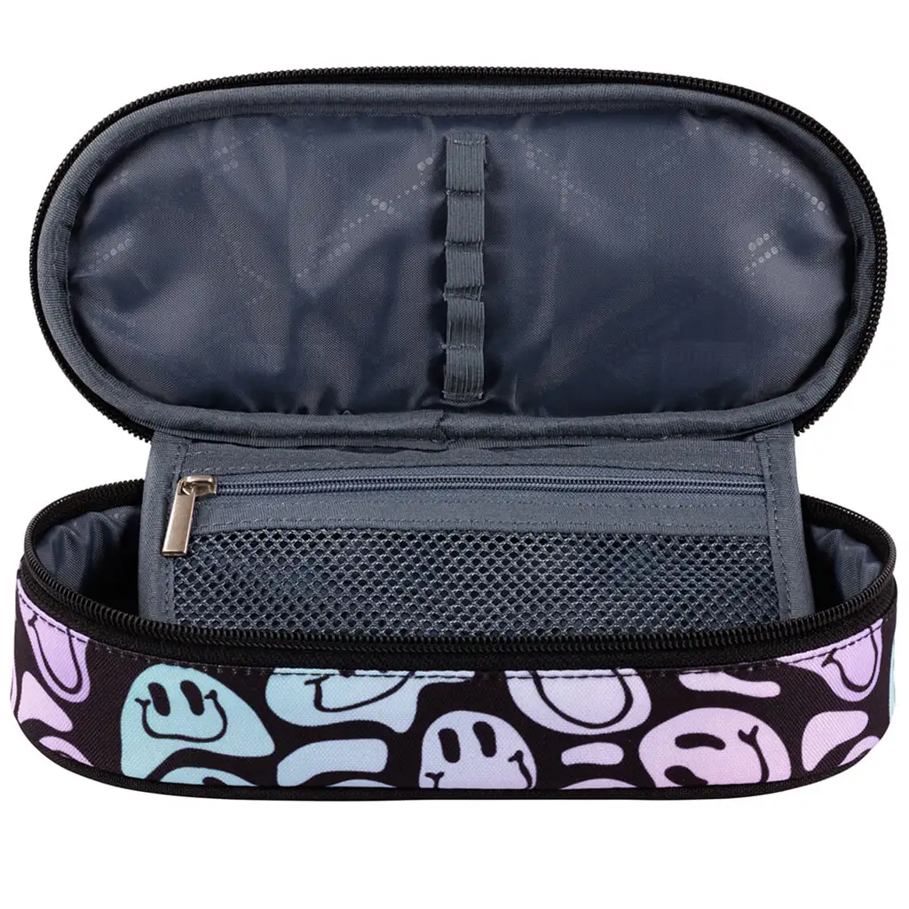 L’astuccio ovale St.Right Crazy Face è un accessorio allegro e pratico che garantisce di rallegrare la routine scolastica quotidiana. L’esplosione di colori vivaci e i volti sorridenti porteranno subito un sorriso sul tuo viso, mentre il design funzionale dell’astuccio tiene in ordine e rende facilmente accessibili tutti gli strumenti di scrittura necessari.