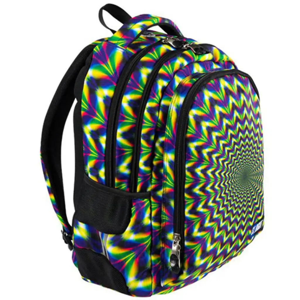 Lo zaino Hipnosis attirerà sicuramente lattenzione di tutti, poiché il motivo speciale inganna locchio, ma oltre allaspetto esterno unico, il comfort e il design pratico interno della borsa saranno attraenti per i bambini. Grazie al design imbottito della parte posteriore e agli spallacci regolabili e larghi, è comodo per i bambini. Lo zaino scolastico realizzato in materiale di qualità e impermeabile è pratico anche per lo stoccaggio, poiché dispone di diversi grandi scomparti e tasche con cerniera per libri e quaderni, oltre a una tasca laterale elastica per la borraccia. Infine, ma non meno importante, è molto utile la parte inferiore rinforzata e i motivi riflettenti che offrono sicurezza.