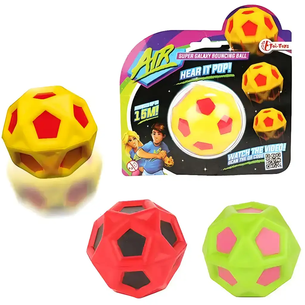 Preparati a vivere una super avventura rimbalzante con la palla Toi-Toys Air Super Galaxy! Questa palla da rimbalzo, dal design speciale e dai colori vivaci, non solo è in grado di rimbalzare incredibilmente in alto – fino a 15 metri – ma ad ogni impatto emette anche un divertente suono "pop", rendendo il gioco ancora più spassoso. È la scelta ideale per giochi dinamici e attività all’aperto.