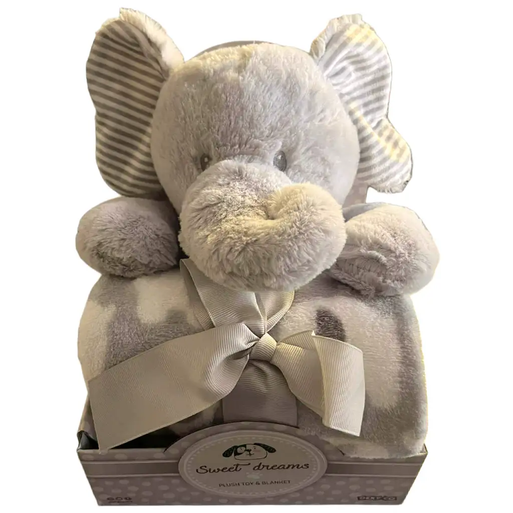 SweetDreams: Set copertina e peluche elefante grigio è la scelta perfetta se cerchi un regalo che sia non solo carino, ma anche davvero pratico. Il set include un elefante di peluche morbidissimo di colore grigio e una coperta abbinata altrettanto soffice, che donano calore e tranquillità al bambino in ogni momento.