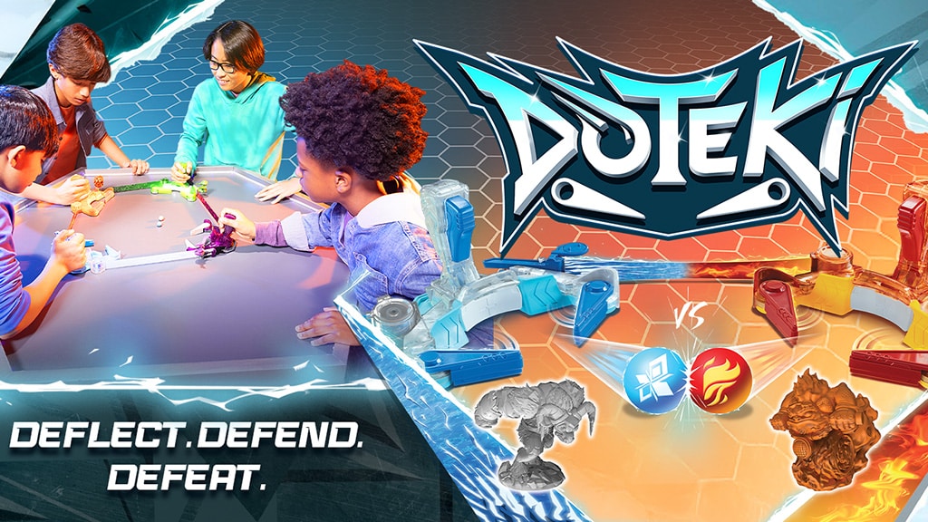 Dōteki è un sistema di combattimento interattivo e modulare sviluppato da TOMY. Questo gioco combina il movimento fisico e il pensiero strategico, offrendo così unesperienza entusiasmante per tutte le età. I giocatori scelgono innanzitutto una fazione – possono decidere tra le fazioni Fuoco, Ghiaccio, Terra o Tecnologia. Successivamente costruiscono unarena unica con elementi modulari che possono essere combinati a piacere, rendendo ogni battaglia diversa dallaltra. Con laiuto dei controller di combattimento, i giocatori possono lanciare o deviare la sfera ionica mentre cercano di colpire i bersagli degli avversari e allo stesso tempo difendere i propri. Le chiavi della salute monitorano i punti vita dei giocatori e, quando una chiave viene eliminata, il giocatore corrispondente esce dalla partita. Questo sistema richiede non solo abilità, ma anche pensiero rapido e una buona strategia, rendendo ogni scontro emozionante e vario.Dōteki offre unesperienza di gioco emozionante e controllabile manualmente, combinando movimento e decisioni rapide in ogni partita. Larena modulare permette ai bambini di riorganizzare continuamente la disposizione del campo, mantenendo così il gioco sempre fresco e strategico. Lequilibrio tra attacco (lancio della palla) e difesa (protezione della chiave della salute) aggiunge suspense e posta in gioco a ogni incontro. Questo concetto è facile da comprendere, ma estremamente gratificante, poiché ogni partita offre nuove sfide e opportunità ai giocatori. Dōteki non è solo divertente, ma sviluppa anche il pensiero strategico, la rapidità e il lavoro di squadra, rendendolo una scelta ideale per tutte le età che amano i giochi attivi e creativi.