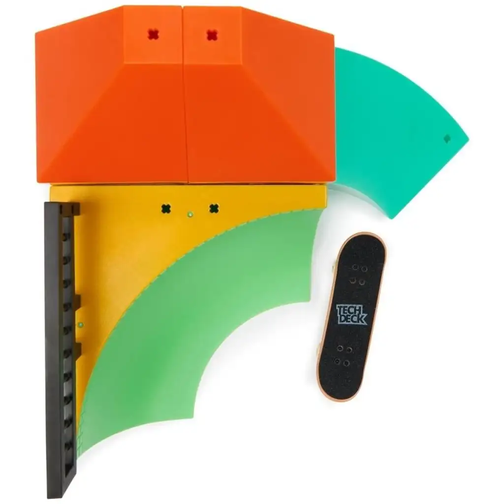 Il set include anche una fingerboard dettagliata, che rispecchia fedelmente il mondo delle tavole professionali sia nella grafica che nella forma. Gli elementi sono resistenti, facili da assemblare e compatibili con il sistema X-Connect, così si possono combinare con altri set pista per creare percorsi ancora più vari e divertenti.