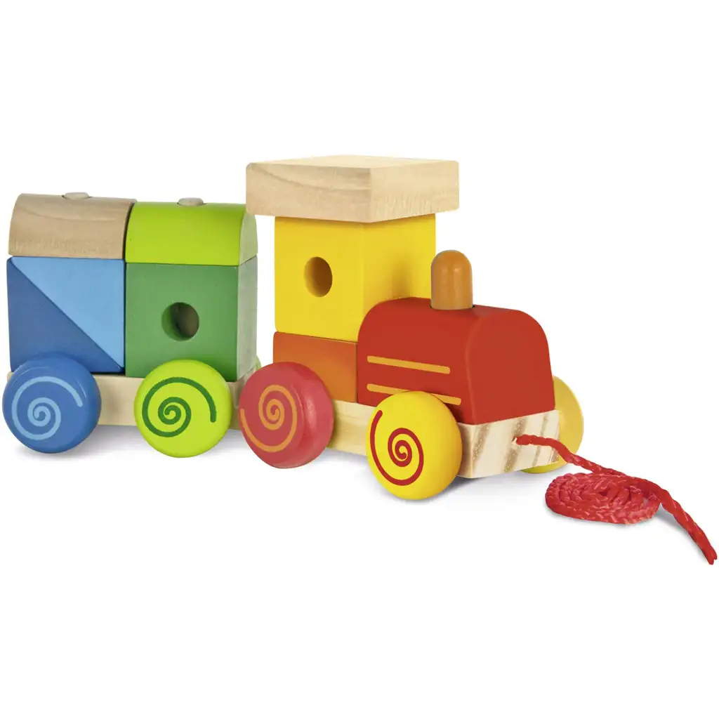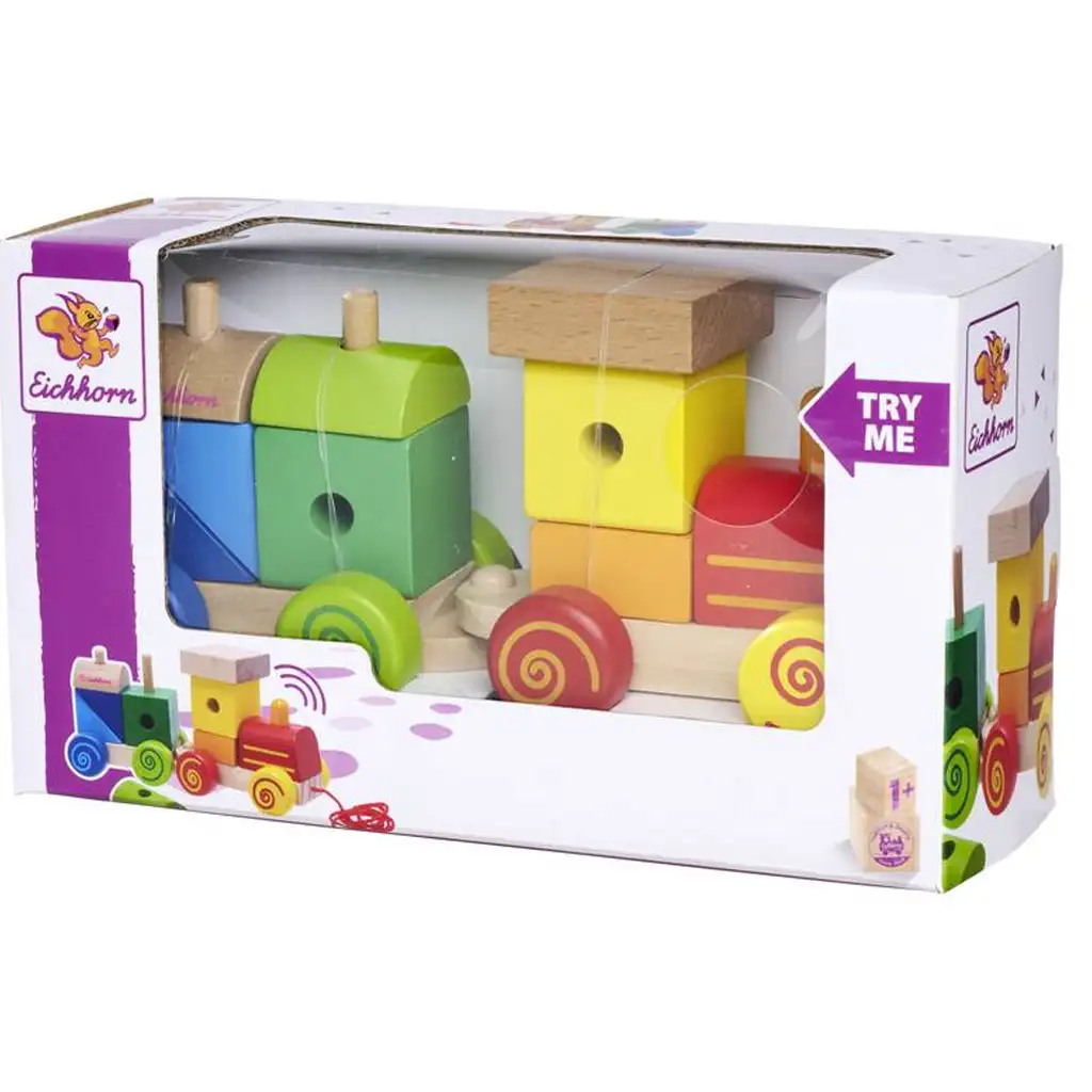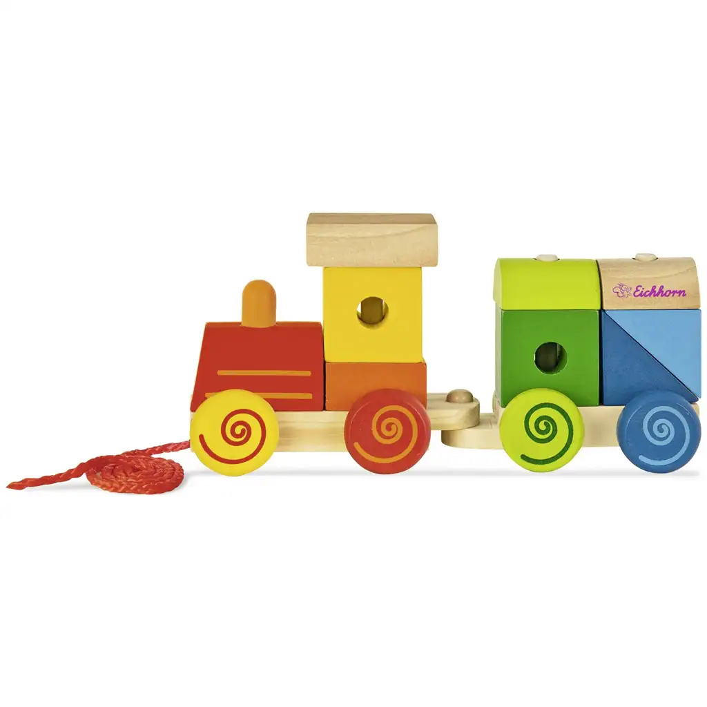 Trenino in legno colorato trainabile con blocchi da costruzione - Eichhorn