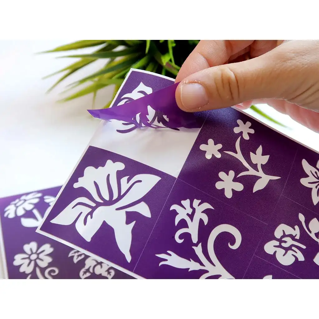 Gli stencil sono autoadesivi, quindi rimarranno saldamente al loro posto fino al completamento del tatuaggio glitter. Sono semplici e sicuri da usare, anche i bambini più piccoli possono realizzarli facilmente – con un po di aiuto possono creare da soli i loro motivi floreali personalizzati. Basta scegliere uno stencil, applicarlo sulla pelle, stendere la colla e cospargere con il glitter – ed ecco un decoro floreale unico!