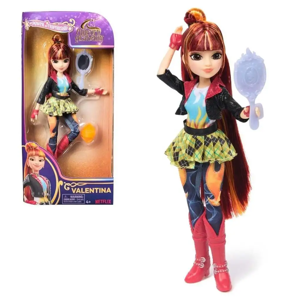 Scopri il magico mondo dell’Accademia degli Unicorni insieme a Valentina, il personaggio elegante e carismatico della popolare serie Netflix! Questa fashion doll, curata nei minimi dettagli, non solo cattura l’immaginazione dei bambini, ma offre anche la possibilità di ricreare o reinventare le scene più memorabili della serie. Valentina non è solo una bambola: è un’eroina coraggiosa, determinata e alla moda che affronta ogni sfida con la forza dell’amicizia.