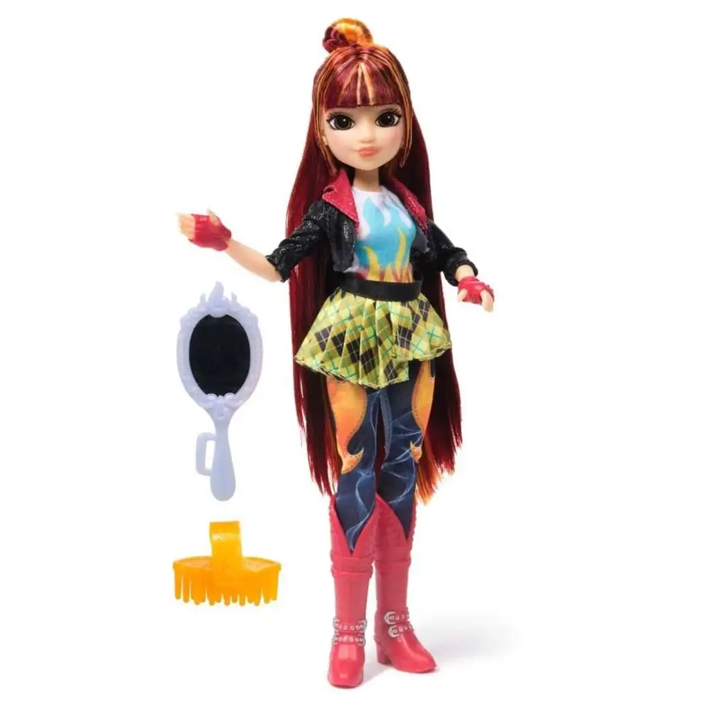 La bambola ha lunghi capelli rossi e lucenti con ciocche dorate, che i bambini possono facilmente pettinare e acconciare utilizzando gli accessori inclusi: una spazzola e uno specchietto. Il set comprende anche una speciale molletta per capelli gialla, così Valentina sarà sempre perfetta durante le avventure scolastiche immaginarie. Il suo abbigliamento è moderno e colorato: leggings con motivo fiamma, gonna in tulle a quadri, giacca trendy e stivali rossi – i dettagli fanno di lei una vera icona di stile.